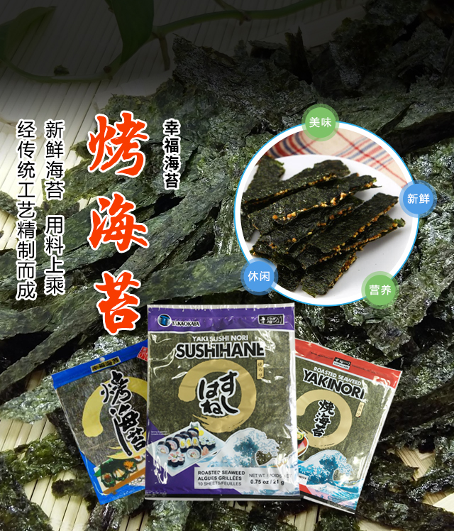 上海高岡屋食品有限公司是日本株式會社高岡屋在中國投資的獨(dú)資公司,日本國株式會社高岡屋于一八九零年創(chuàng)立,在日本有著百年以上的歷史。公司會長高岡正則先生早在60年代就來到中國,積極推廣海苔的養(yǎng)殖和加工技術(shù),開拓發(fā)展了中國條斑海苔養(yǎng)殖加工事業(yè),其產(chǎn)品在日本國內(nèi)獲得“農(nóng)林大臣獎”,在美國和歐亞地區(qū)也深受消費(fèi)者歡迎。